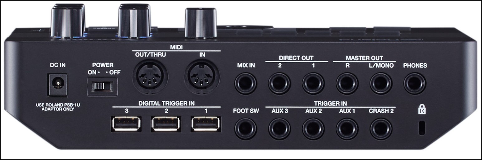 - Three digital trigger inputs for advanced Roland trigger pads like the 14-inch PD-140DS digital snare, 14-inch VH-14D digital hi-hat, and 18-inch CY-18DR digital ride cymbal